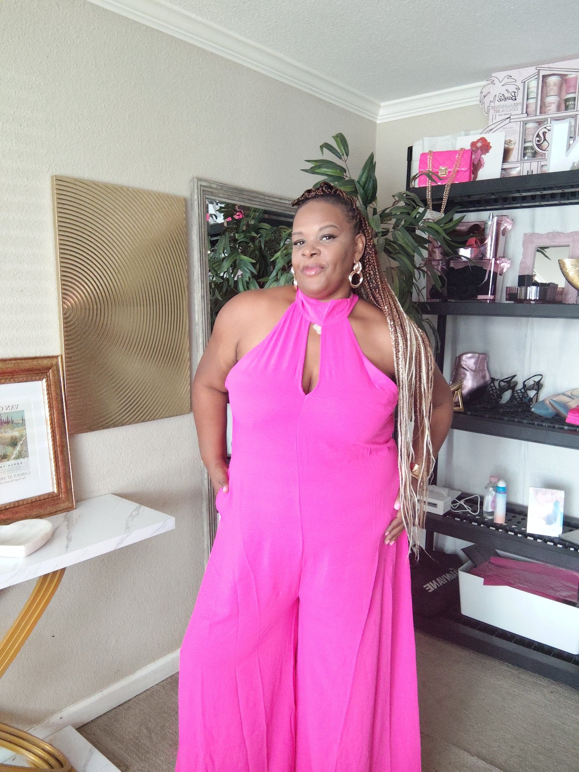 This is joy - in outfit form. The Life of the Party Halter brings bold color and effortless movement together in one unforgettable look. Featuring a flattering halter neckline and flowy wide-leg silhouette, this jumpsuit was made for celebrations, brunches, and moments worth remembering.